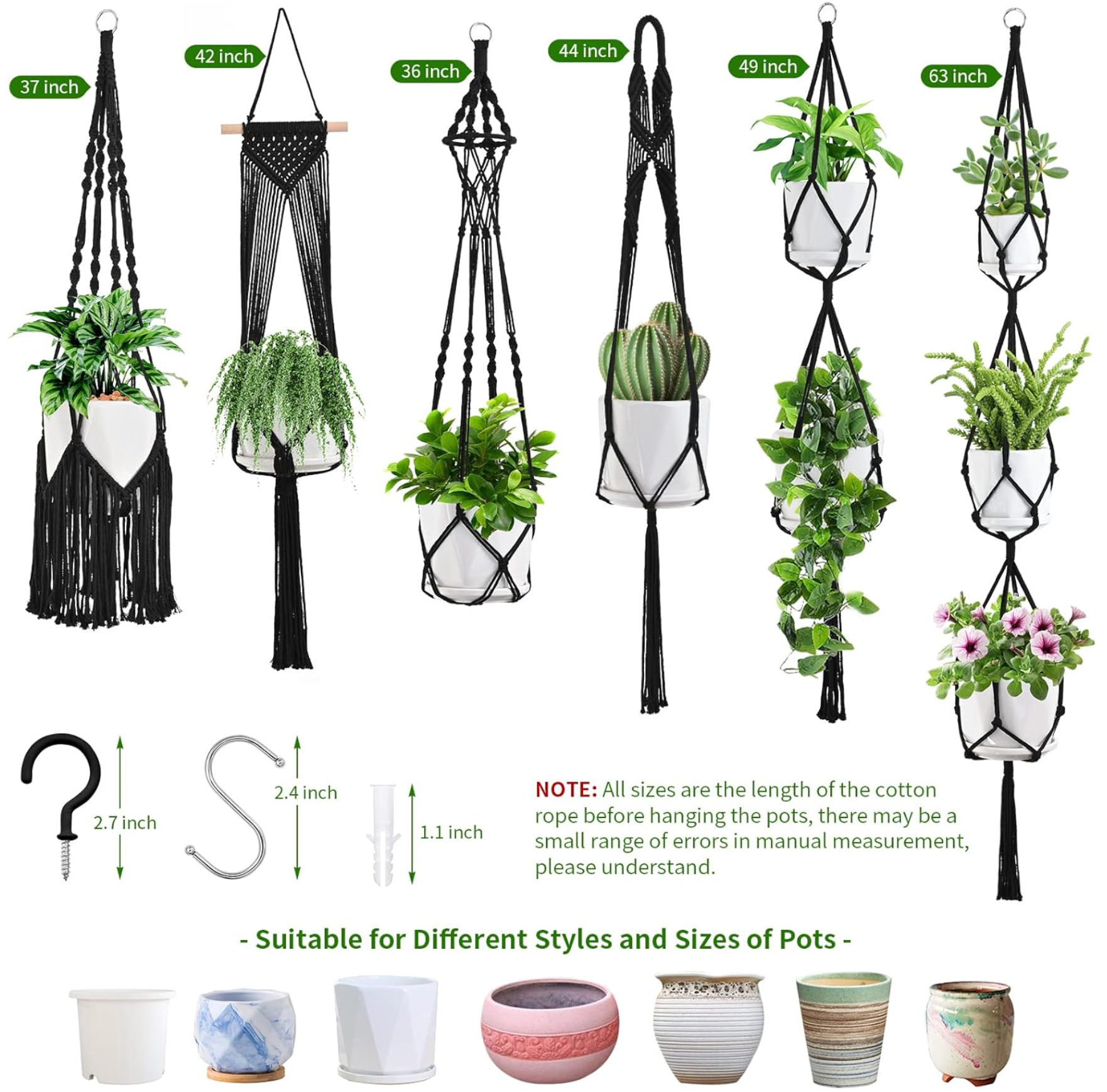Add vertical charm to your plant display with our Macrame Hanging Planters Set — a handcrafted collection of six boho-style hangers that instantly transform any room into a lush, elevated oasis.