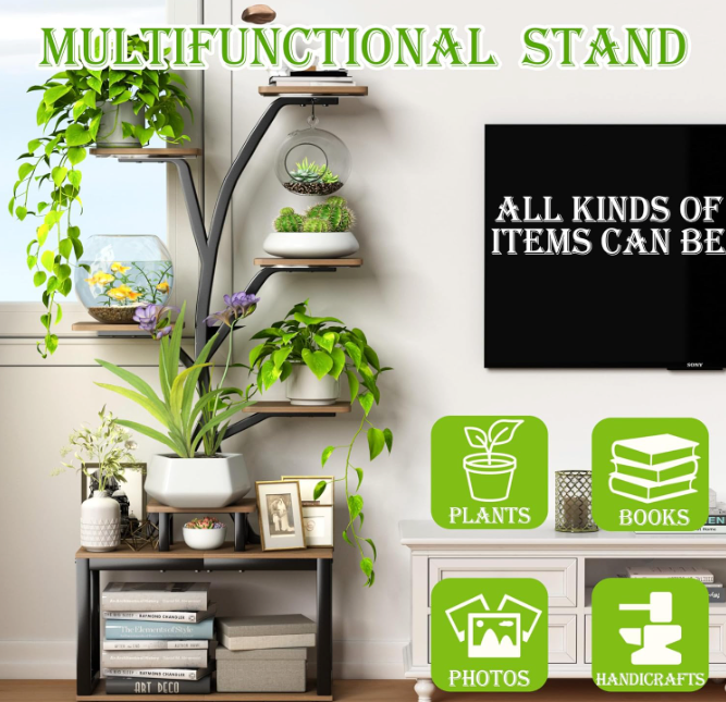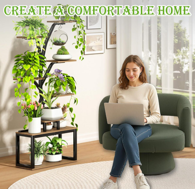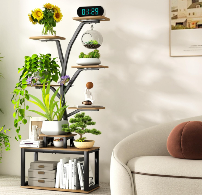Bring the feeling of a sunlit grove indoors with the Sylva Lumen Tree—a branching plant stand designed to display your collection like living artwork. Its slender, tree-inspired frame reaches upward with staggered wooden platforms, giving every leaf its own space to shine and creating a balanced, airy silhouette in any room.