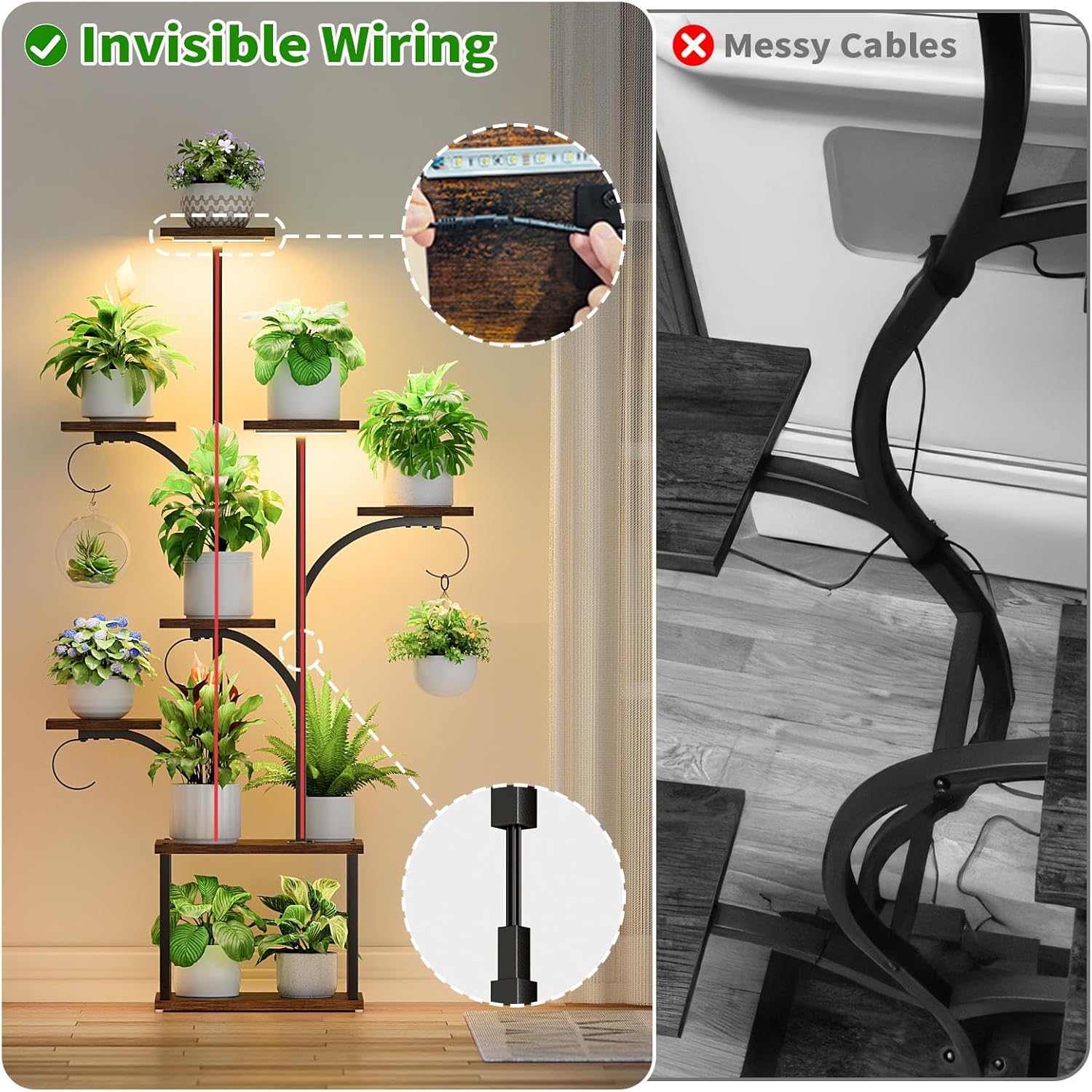 Crafted with warm wood shelving, matte black steel, and integrated soft-glow lighting, Arboris turns your greenery into a living centerpiece — blending botanical care with timeless design.
