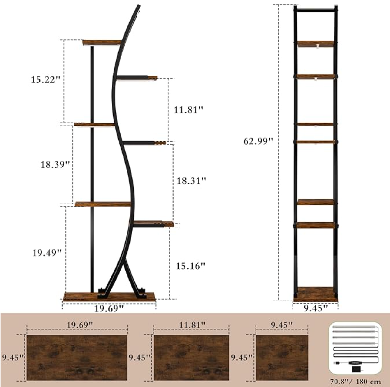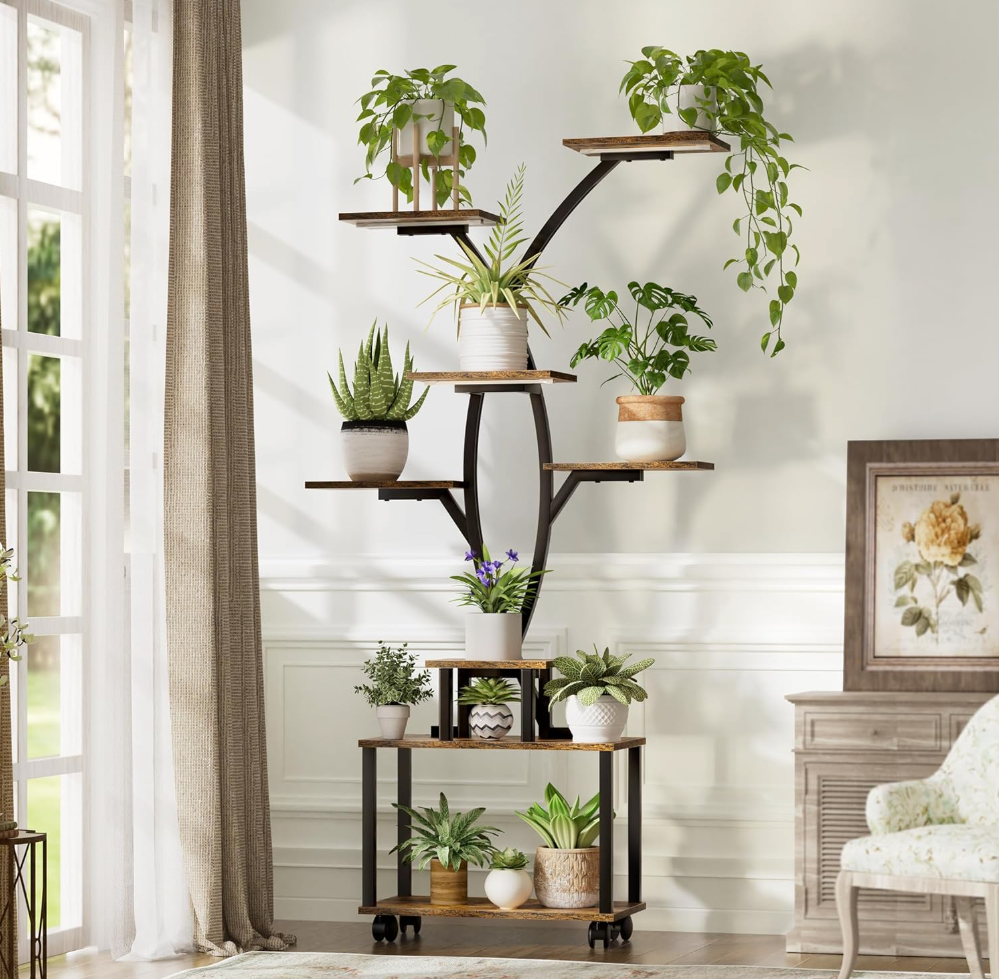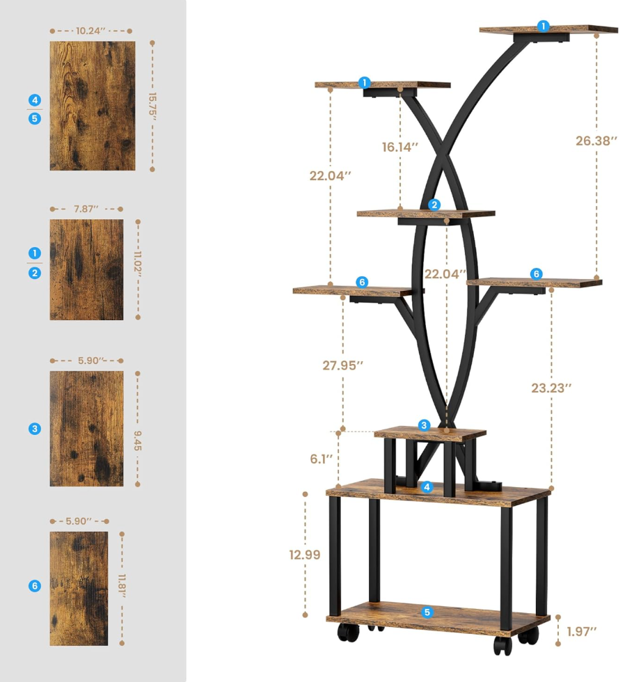 Built from warm wood-textured shelving, matte black steel, and grounded in motion, this is not just a plant stand—it’s botanical architecture in motion.