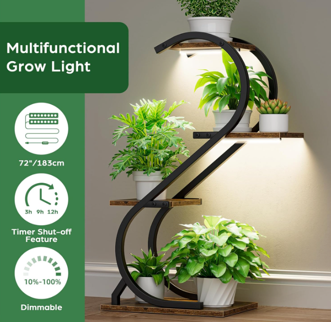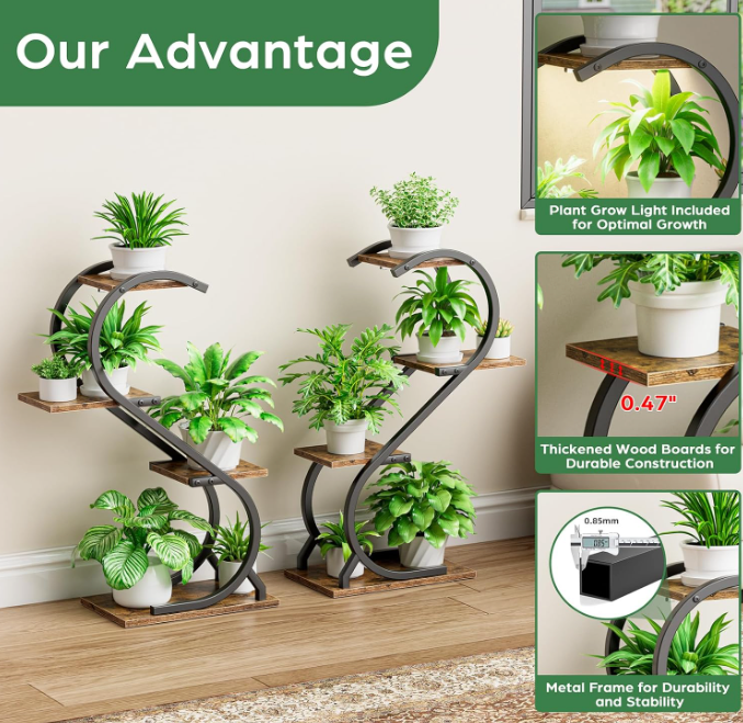 Its sturdy steel frame and wood-finished shelves balance form and function — perfect for showcasing lush ferns, trailing ivy, or festive poinsettias. Whether placed in a cozy living room nook or bright window corner, The Evergreen Glow Stand transforms indoor gardening into a luminous ritual of care and calm.