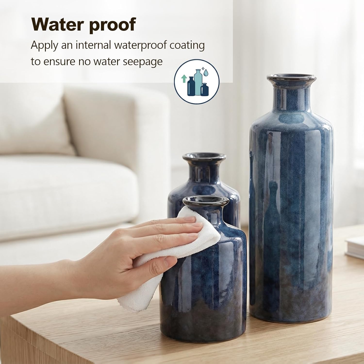 Immerse your space in tranquil blue with The Indigo Horizon Vase Trio — a set of three artisan-glazed vases designed to echo the calm and complexity of dusk-touched skies. Each vase in the set features flowing gradients of deep indigo and stormy slate, blending artful imperfection and sophisticated shine.
