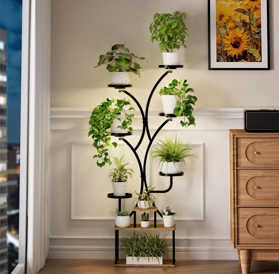 Reaching skyward like a cascade of living light, The LumaClimb Stand turns your indoor garden into a glowing statement piece. With nine gracefully curved tiers, it offers every plant its own stage to thrive — from cascading pothos to upright ferns basking in the gentle radiance of integrated grow lights.