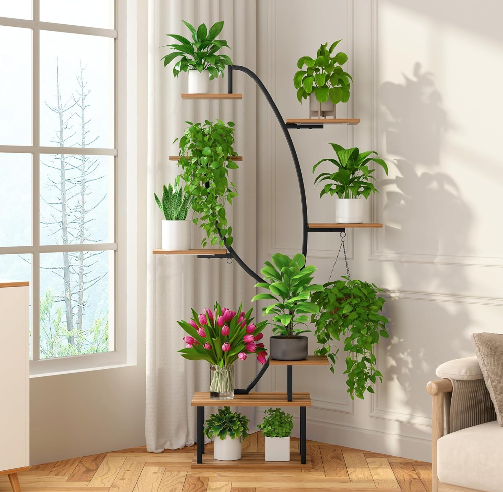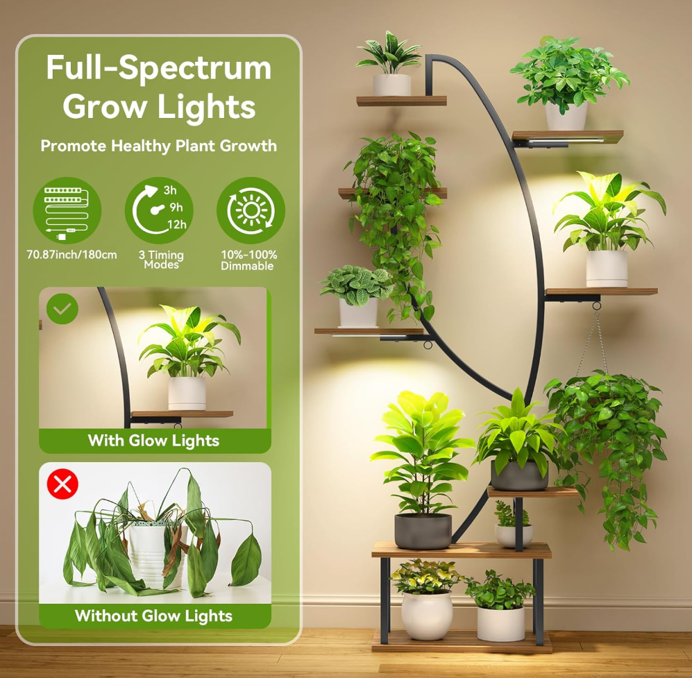 Crafted with warm wood tones, matte black metal, and gentle integrated lighting, Luna offers a multi-level sanctuary for your plants — inviting calm, balance, and beauty into your home. From cascading vines to statement foliage, every placement becomes a story in stillness.