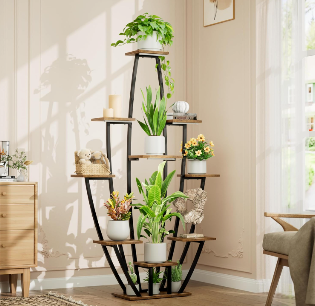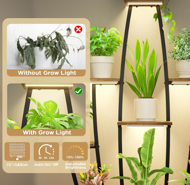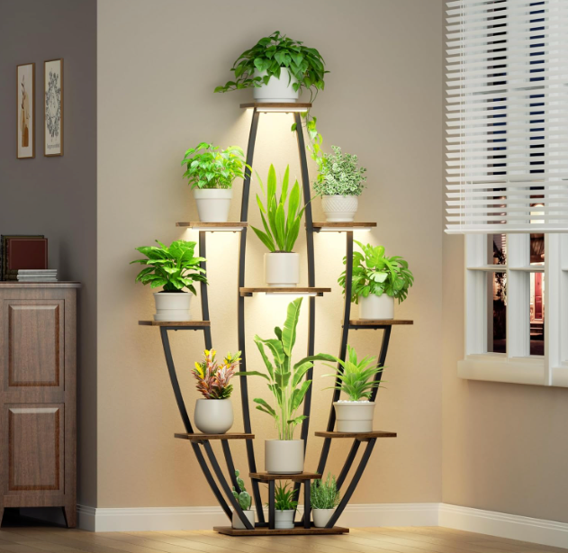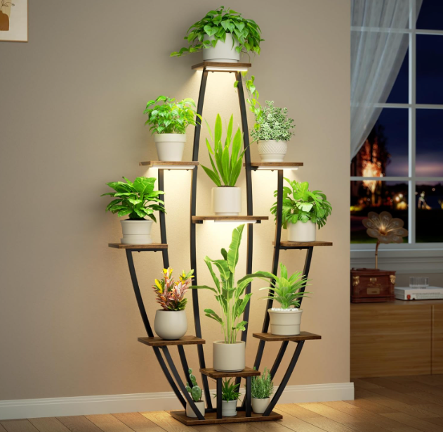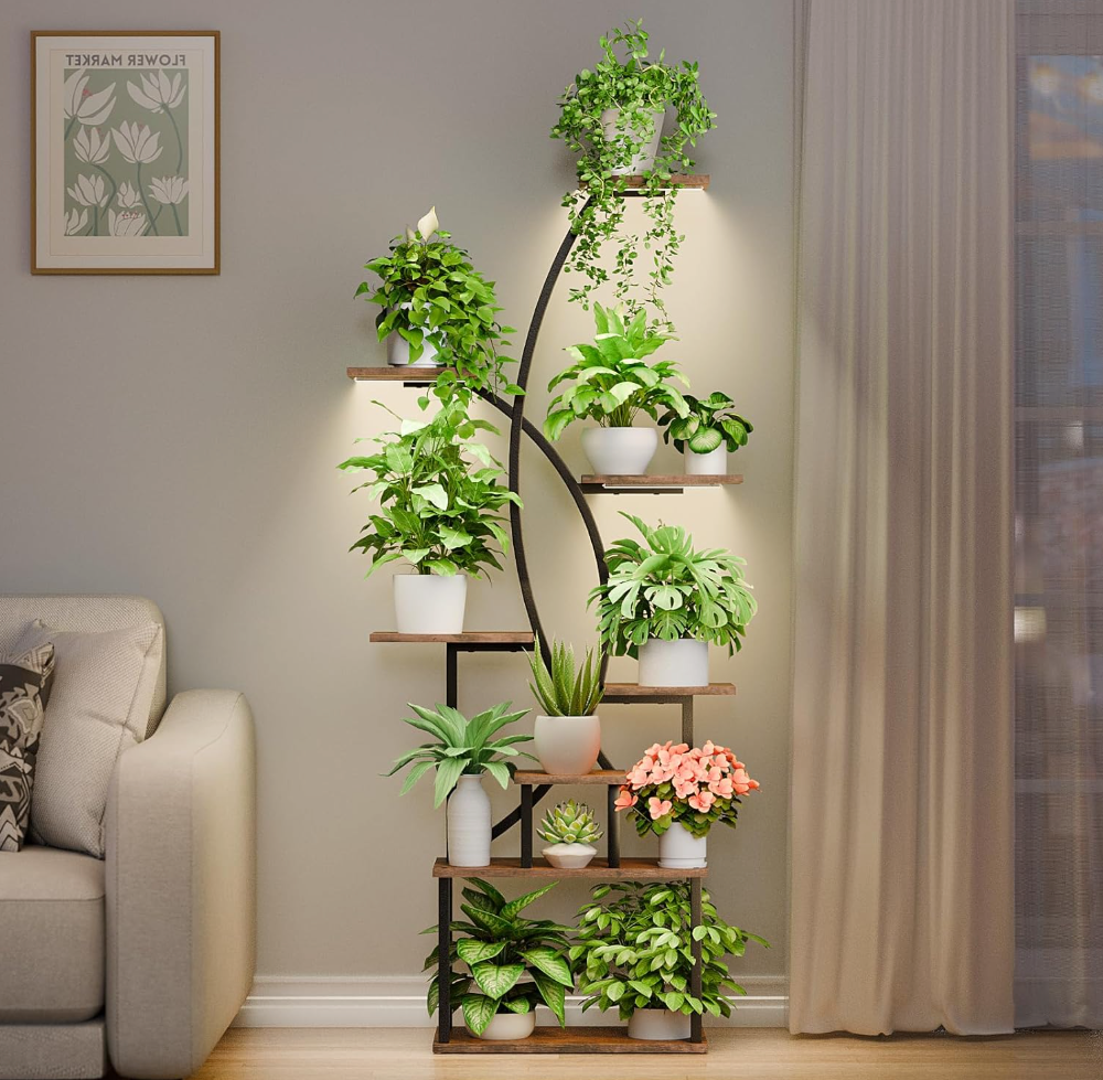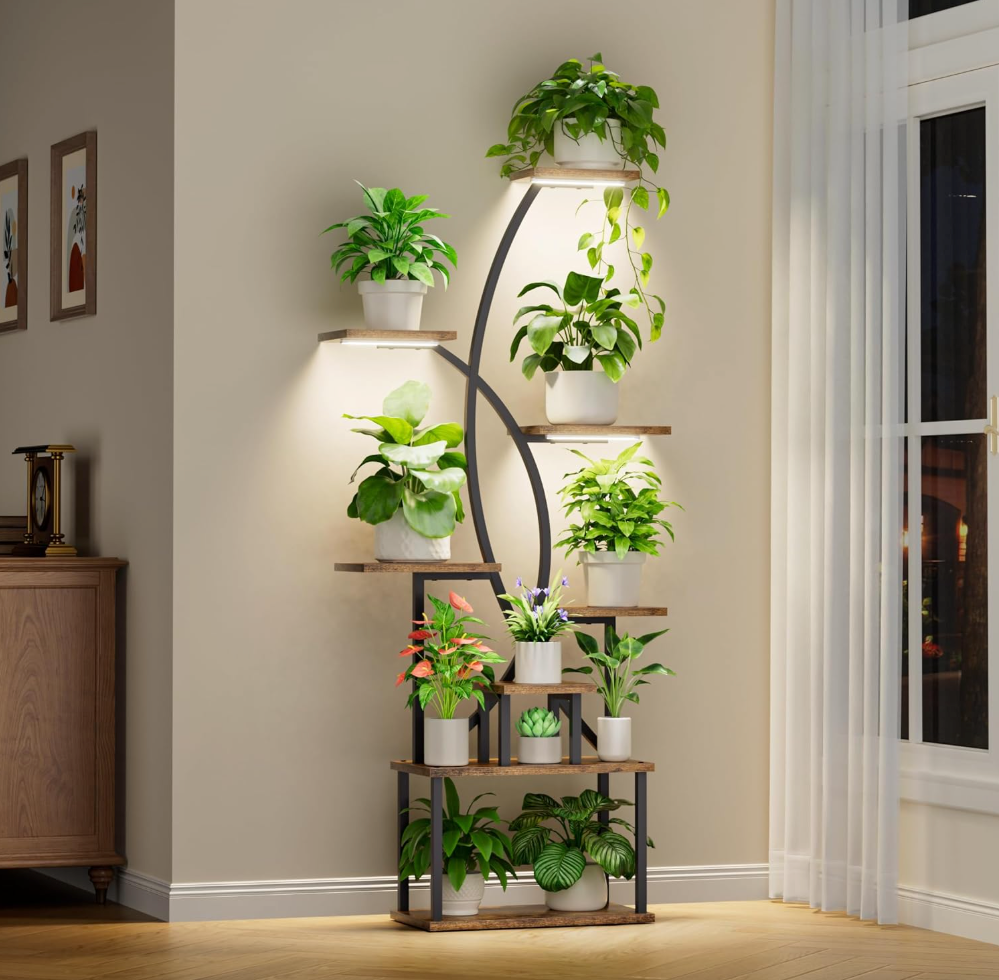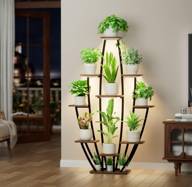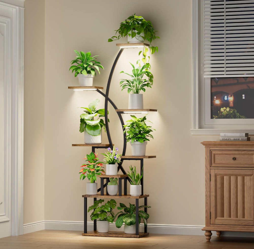 Framed in matte black steel and balanced with warm wooden shelves, Virella invites your greenery to flourish in harmony. Integrated lighting softly highlights every leaf, turning your plant collection into a serene, illuminated focal point.