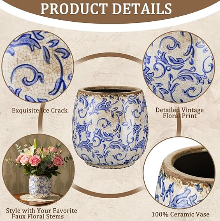 Bring timeless charm and artistic elegance to your greenery with the Vintage Botanical Ceramic Planter. Each planter features a classic rounded shape with beautifully detailed botanical patterns in an array of hand-finished colors, adding a touch of history and sophistication to any space. The lightly crackled glaze and aged rim evoke the look of a well-loved antique, making every planter feel unique.